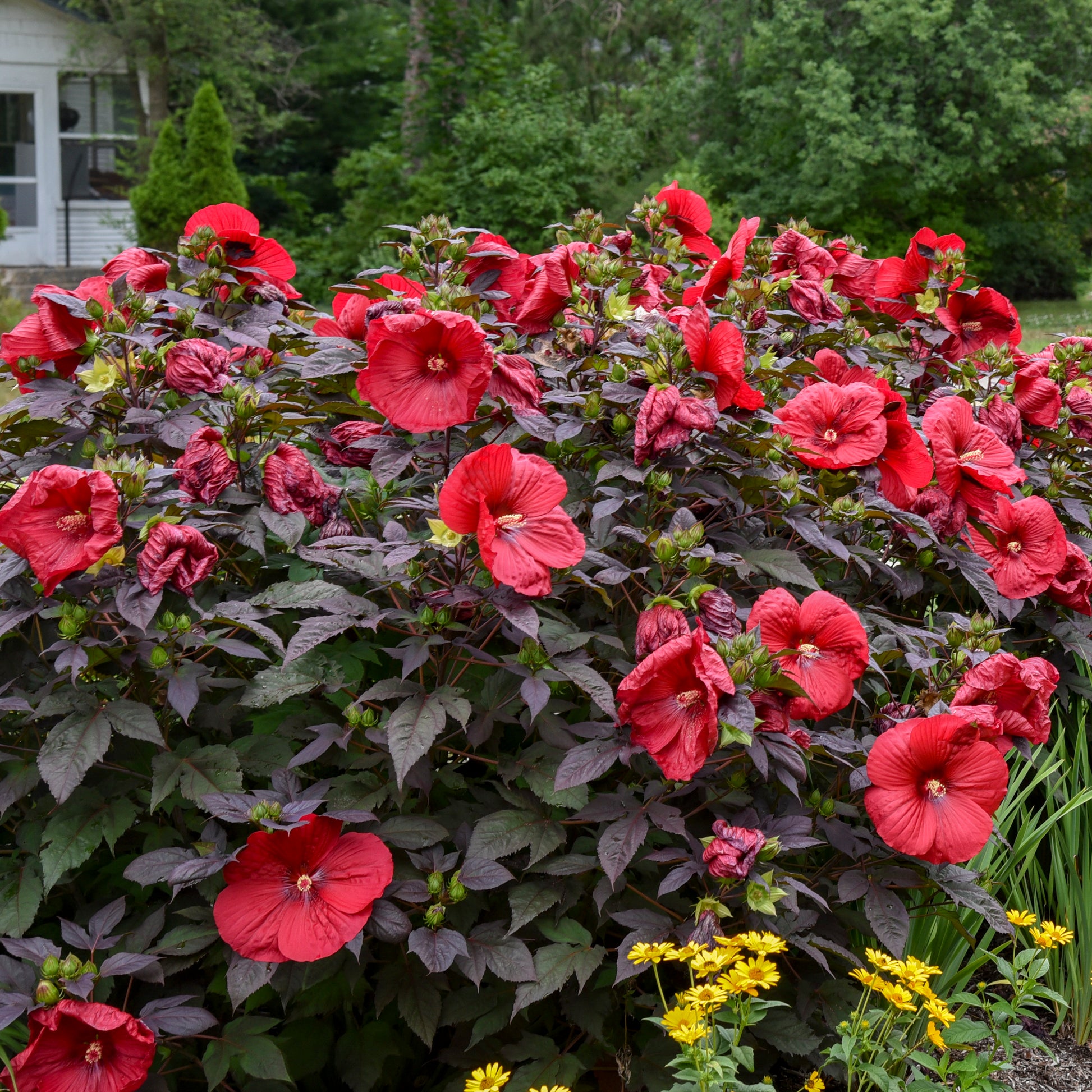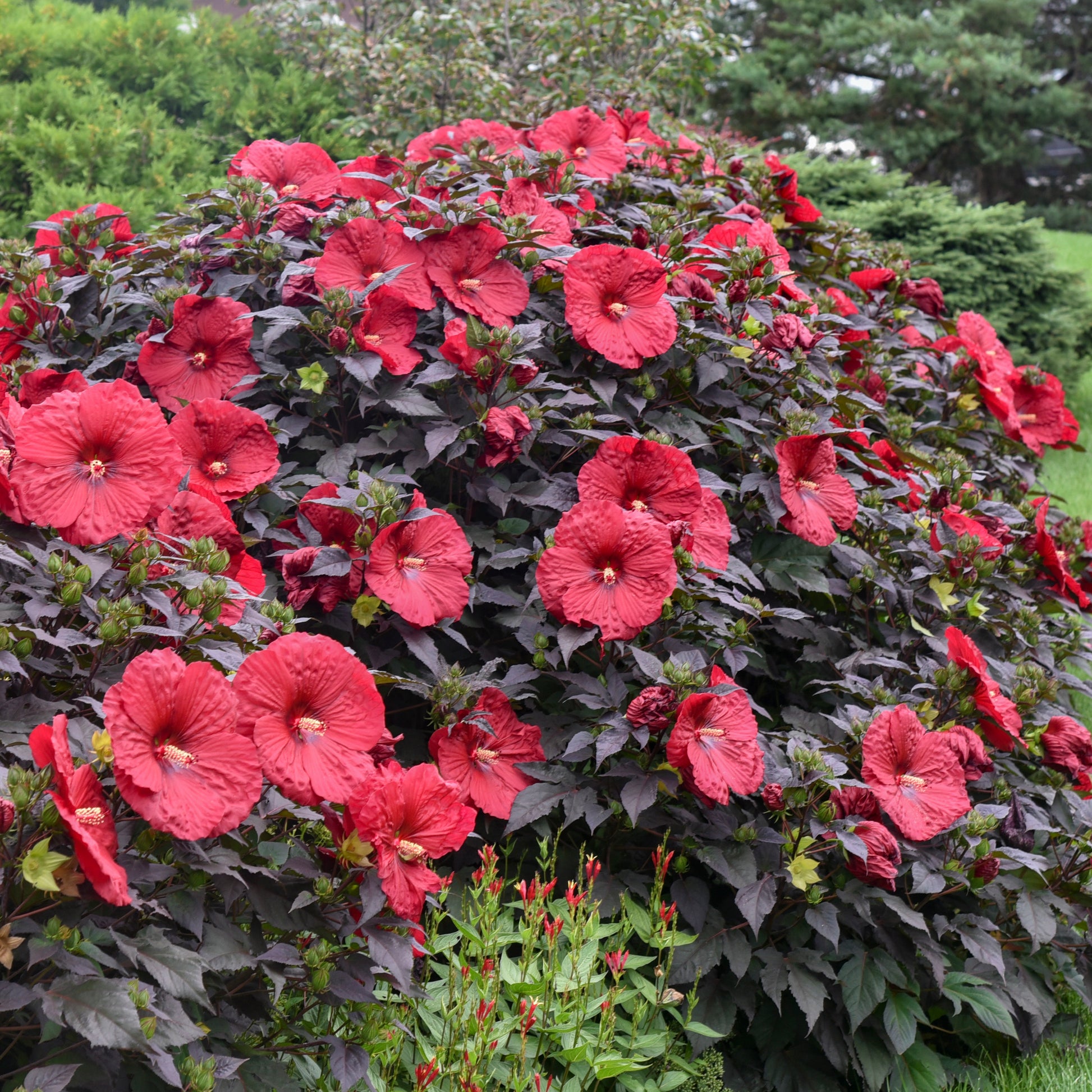 These North American native plants bring massive, tropical-looking flowers all the way to zone 4. Although later to emerge than most perennials in spring, these are fast growing plants capable of adding an inch of new growth a day. Excellent at brightening up end of season gardens.