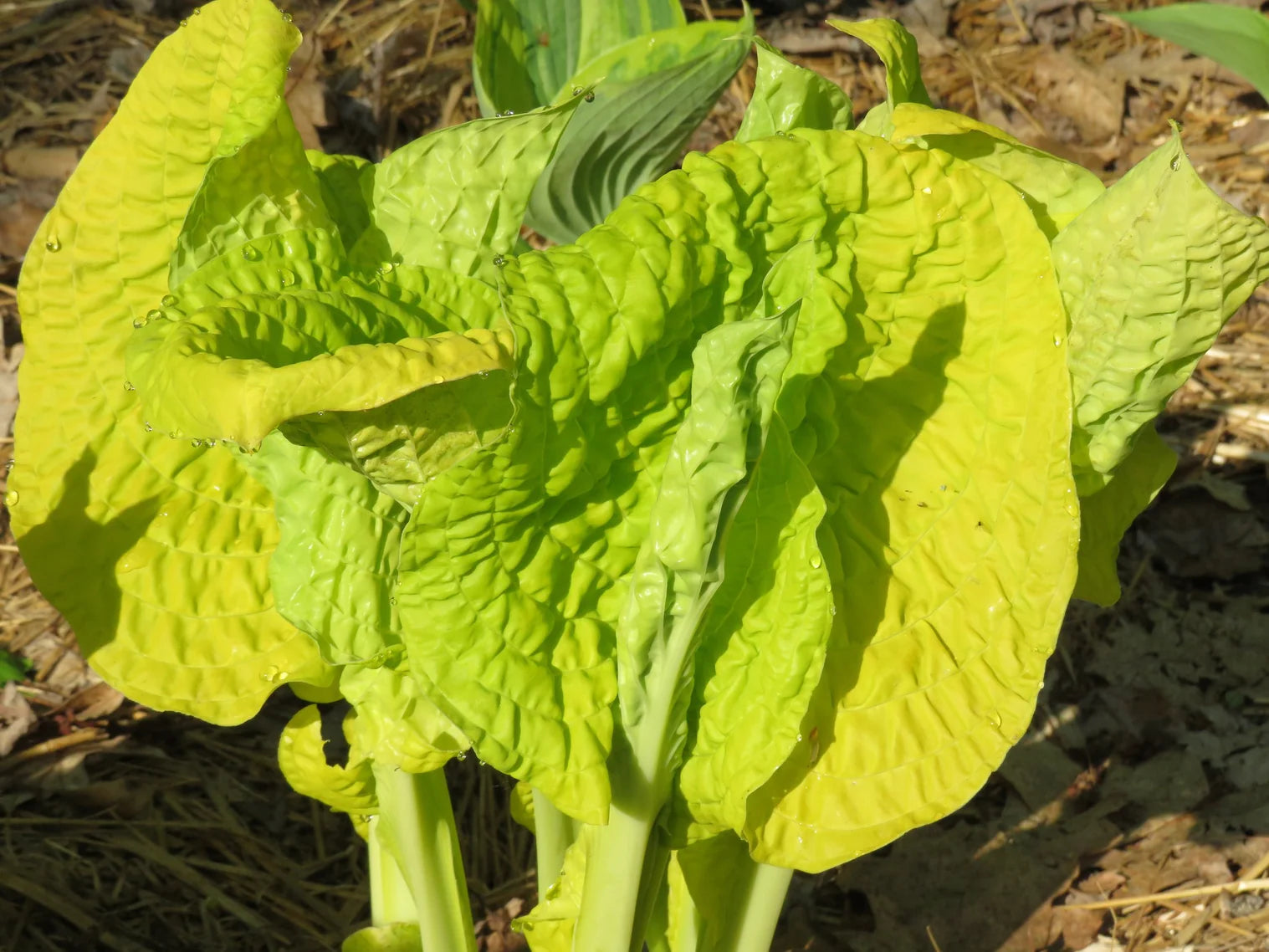 While the distinctive “goosebumps” on this Don Rawson hosta catch the eye, it’s the overall form that truly steals the show. Leaves emerge a soft yellow in spring before transitioning to green in summer, but it’s the wide, irregular foliage held low and outward that creates a beautifully spreading clump. With its bold shape and seasonal color, this hosta makes an ideal specimen for anchoring the edge or corner of any shade garden.