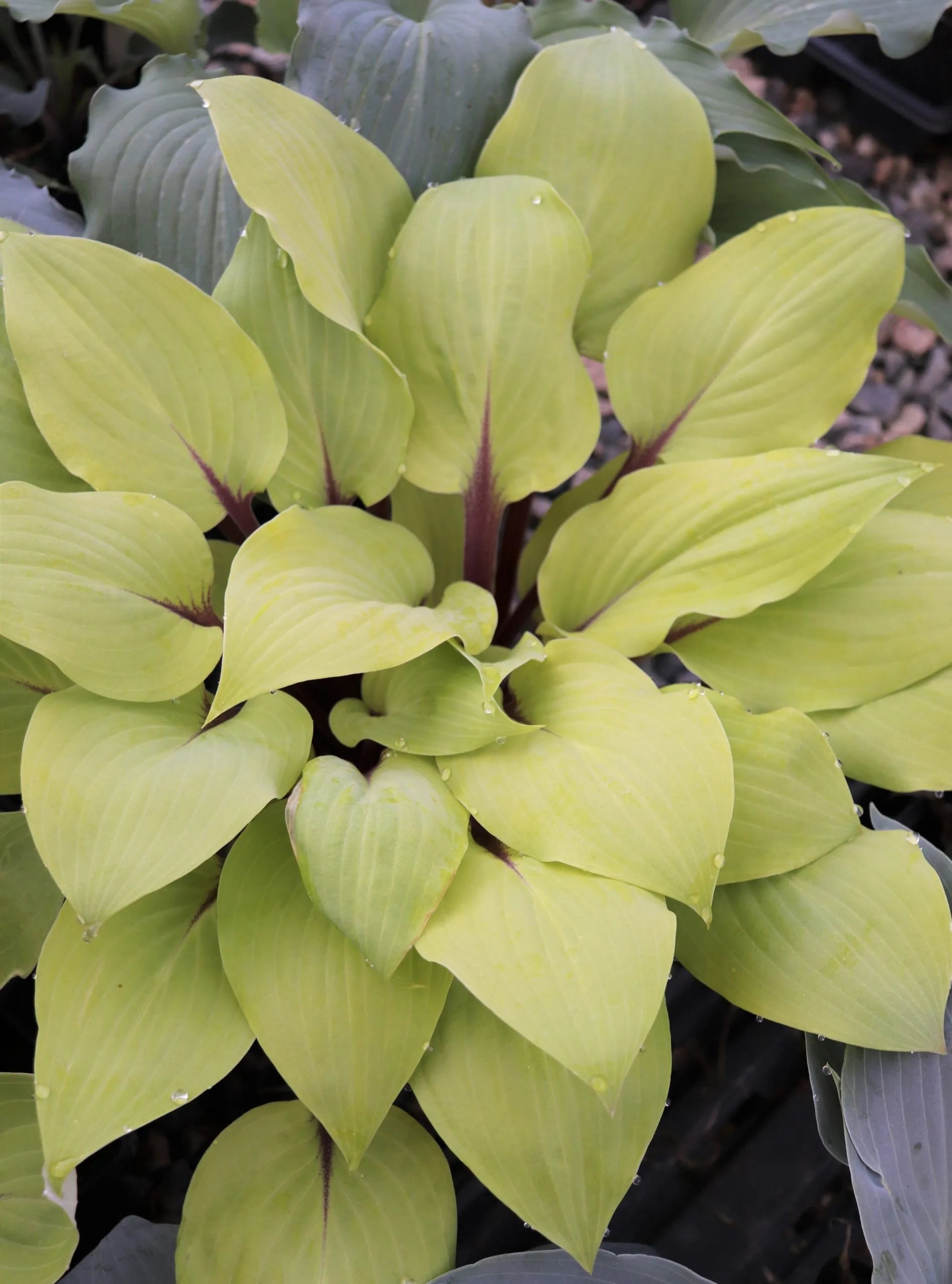 Once destined for the compost pile, this medium-sized hosta surprised us with its bright yellow spring foliage and vigorous growth. Its distinctive leaf shape paired with striking red petioles makes it a standout in our collection of red-stemmed hostas. Named after a lemon variety that shares its unexpected charm, this “diamond in the rough” is sure to win your heart as it has ours.